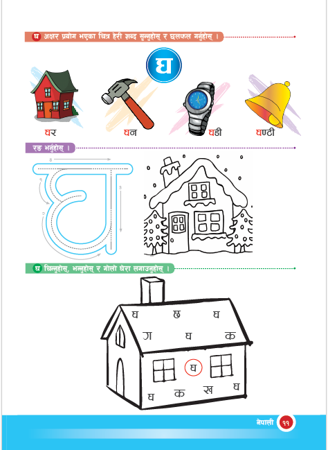 Nursery students build a strong foundation in Nepali language with ‘Aaksharmala-अक्षरमाला.’ This preschool book is thoughtfully designed to make learning Nepali letters exciting and interactive. Featuring vibrant illustrations, playful activities, and easy-to-follow lessons, this book is perfect for parents, teachers, and caregivers who want to make language learning a joyful experience for kids. Whether at home or in the classroom, ‘Aaksharmala-अक्षरमाला’ inspires children to develop essential reading and writing skills from an early age.