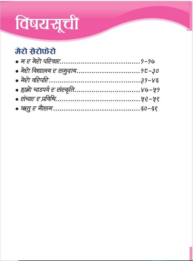 - मेरो वरिपरि: तपाईंको वरिपरिको वातावरणको परिचय गराइएको छ। तपाईंको घर, बगैंचा, पार्क, र सडकको विवरण राख्नुहोस्।